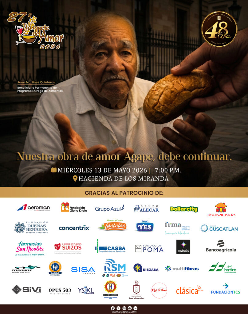 27° Banquete del Amor 2026.Agradecemos a las empresas por su sacrificio, apoyo y confianza en la Asociación AGAPE de El Salvador durante estos 48 años.